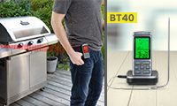 På mottagaren kan man allt som allt välja mellan åtta olika livsmedelsinställningar – BEEF (nöt), LAMB (lamm), VEAL (kalv), HAMBURGER, PORK (svin), FISH (fisk), TURKEY (kalkon) och CHICKEN (kyckling) – och mellan upp till fem färdighetsnivåer: från WELL (genomstekt) via flera mellansteg till RARE (lätt grillat). De olika måltemperaturerna kan ändras efter tycke och smak. En stoppur- och tidtagningsfunktion får runda av BT40-utrustningen. Och om du vill köra igång med utomhusgrillningen så fort som möjligt: Låt grillbiten sköta sig själv helt riskfritt, för när du använder BT40 slipper du gå en massa onödiga vändor för att kontrollera grillen tack vare den 20 meter långa signalräckvidden.