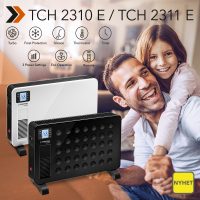 NYHET Design-konvektor TCH 2310 E / TCH 2311 E: 2 300 watt stark värme i tre nivåer med turbofläkt, fjärrkontroll och lättläst display
