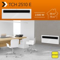 Den automatiska styrningen av inomhustemperaturen och intelligent värmeautomatik minimerar den redan ekonomiska energiförbrukningen hos den designade konvektorn TCH 2510 E. Konvektorn är en snygg detalj i sin egen rätt: Ett stort och högeffektivt värmeelement i aluminium, 110 cm långt och med aerodynamiskt utformade luftutsläpp på apparatens ovansida, ger en oöverträffat snabb värmefördelning i utrymmen på upp till 30 respektive 75 m². Den perfekta värmelösningen – oavsett om det gäller vardagsrummet, sovrummet eller ett barnrum, kontoret, bad- och bastuområden eller ouppvärmda garage, vinterträdgården eller semesterbostaden.