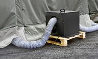 Uppkomst av kondensat och åtföljande problem kan bara undvikas om luftfuktigheten i exempelvis tält eller bostadscontainrar avfuktas så att den alltid ligger under daggpunktsnivån. Eftersom de effektiva adsorptionsluftavfuktarna, som till exempel TTR 400 D eller TTR 500 D, har internt åtskilda luftledningar är de idealiska för de här förutsättningarna samtidigt som den tåliga Dryboxen helt och hållet anpassats till de krav som ställs på luftavfuktarna: boxen har till exempel utrustats med lämpliga slang-anslutningsöppningar samt en låsbar servicelucka som används till konfigurering av anordningarna.