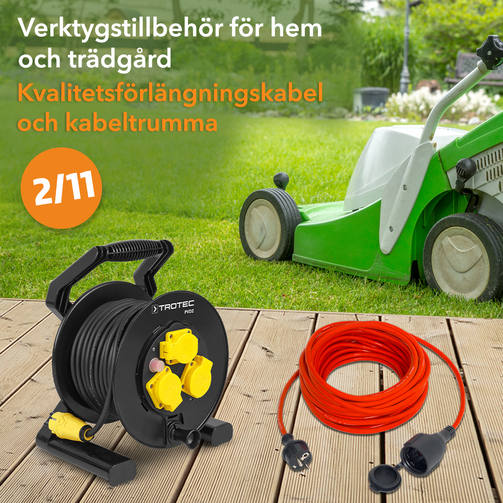 Använd dig av märkeskvalitet från Trotec. Vi garanterar högt värde, säkerhet och funktionalitet. Beställ redan idag förlängningskabeln 230 V till vårt aktuella pris från 264,97 kr inkl.moms eller kabeltrumman PVD2 för endast  1.250,89 kr inkl. moms – nu i Trotec-butiken!