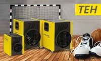 Med ett mobilt, extra värmesystem är du utrustad för alla möjligheter. Endast en kort tid före en jympagrupp börjar, kan du sätta på en liten men effektiv värmare. Inom några få minuter är det trevligt varmt i det önskade området av sporthallen och sporten kan börja. Så kan du på bästa sätt försörja med värme även spontana träffar eller kurser som till exempel på grund av dåligt väder har flyttats in i hallen. Spontan, pålitlig, effektiv. Dessa egenskaper överensstämmer med Trotecs elvärmare i TEH-serien. De starka värmegivarna behöver inte tillufts- och frånluftsöppning och förbrukar inget syre – Tack vare den fokuserade värmeluftströmmen som sörjer för att värmen kommer exakt dit den behövs.