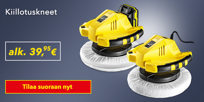 - Akkupainepesurit, epäkeskohiomakoneet ja autopölynimurit, lian poistamiseen ajoneuvosta ja himmeiden maalipintojen kiillottamiseen.