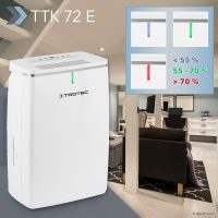 Vuodenajan vaihtuessa on vain ajan kysymys, milloin ennustetaan sateista ja koleaa tai kylmää ja sateista. Kosteus jää silti harvoin oven ulkopuolelle, vaan se hiipii sisään kumisaappaiden, märkien sateenvarjojen tai kastuneen puseron mukana. Kun mukaan tulee vesihöyry keittiöstä ja kylpyhuoneessa, ilmankosteus ylittää nopeasti kriittisen rajan. Ilmankuivain TTK 72 E , joka on vihdoin jälleen saatavana, pitää suuret tilat luotettavasti kuivina ja ilmaisee lisäksi integroidulla LEDillä, on ilmankosteus vielä optimaalisissa rajoissa 55 – 70 %.