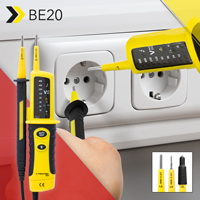 Kompaktin jännitemittarin BE20 monipuoliset toiminnot ovat nopeita ja helppoja käyttää. Ergonomisesti muotoiltu, kevyt mittauslaite istuu hyvin käteen ja sen integroitu taskulamppu tarjoaa käyttäjälle lisäturvallisuutta, sillä mittauskohteet voidaan valaista työskenneltäessä pimeissä ympäristöissä. Kotelon suojausluokka on IP64, joten se on iskunkestävä, pölytiivis ja samalla roiskevesisuojattu. Toiminnan automaattisesti testaava ammattilaisen laite näyttää jännitteen, vaikka paristot ovat tyhjät.