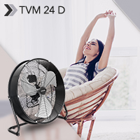 Pysäytettynä se ilahduttaa silmää – käynnistää se viilentää kehoa ja huonetta. Retromuotoiltu lattiatuuletin TVM 24 D on erittäin hyvän näköinen toimiessaan tai pysäytettynä. Tyypillisen rakenteensa vuoksi myös tuulikoneeksi kutsuttu cooli klassikko soveltuu viilentävän ilmavirran puhaltamisen lisäksi esimerkiksi tuulen tuottamiseen valo- ja elokuvastudiossa tai tuulettamiseen ja kuivaamiseen.