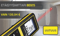 Missä ovat ne ajat, kun mittauksia täytyi tehdä vaikeasti mittanauhoilla ja tuumamitoilla pöytien alta ja etäisimpiin nurkkiin asti? Ne ovat ohi! Ja onneksi ovat ohi sanovat kaikki ne, jotka muistelevat naarmuuntuneita polvia ja hermoja kuluttavaa näpertelyä tuumamitta vasemmassa sekä kynä ja lehtiö oikeassa kädessä. He käyttävät nyt huippulaatuista etäisyysmittaria BD25, jossa on muutaman sekunnin nopeudella toimiva lasertarkka mittaus.