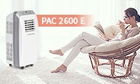 Tyylikäs ilmastointilaite sulautuu sisustukseen, sillä pienten mittojensa ansiosta (394 x 340 x 780 mm) löytää se paikkansa pienestäkin nurkkauksesta. Paikkansa löydettyään PAC 2600 E käy töihin: sen suurin jäähdytsteho on 2,6 kW ja se ylläpitää haluttua ilmastoa huoneissa, joiden enimmäiskoko on 80 m³. Haluttaessa laite viilentää jopa 16 °C asteeseen saakka. Tämä ilmastointilaite osaa muutakin kuin viilentää, nimittäin toimia niin tuulettimena kuin ilmankuivaimenakin.