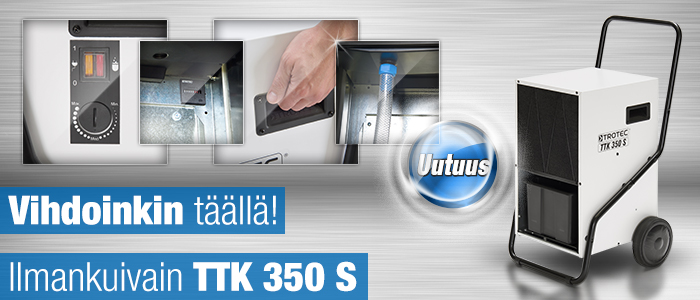 Trotecilla on nyt vihdoinkin edullinen vaihtoehto tehokkaaseen kuivaukseen. Kauan odotettu uusi ilmankuivain TTK 350 S on nyt vihdoinkin saapunut! Uutuustuotteella on lisäksi upea tutustumisalennus, säästät yli 260 €! Kannattaa siis tilata nyt! Lue loppuun
