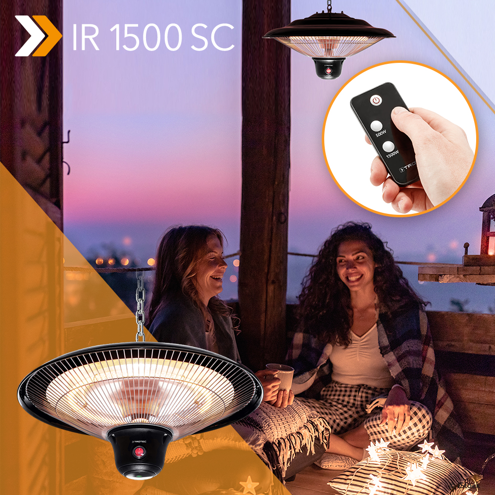 Jos aiot kylmästä huolimatta paeta kasvavaa infektiovaaraa terassille ystävien tai perheen kanssa, katon suunnasta on saatava tarpeeksi lämpöä. Tai käytössä on oltava vihdoin jälleen saatavissa oleva design-kattolämmitin IR 1500 SC. Tämä tehokkaalla infrapunalämmitystekniikalla varustettu roiskevesisuojattu lämpölähde säteilee välitöntä lämpöä tasaisesti joka suuntaan noin 10 m²:n alueelle. Lisäksi korkealaatuinen kattolämmitin kerää pisteet elegantilla, mustaksi eloksoidulla alumiinirungollaan – tämä laite miellyttää myös silmää.