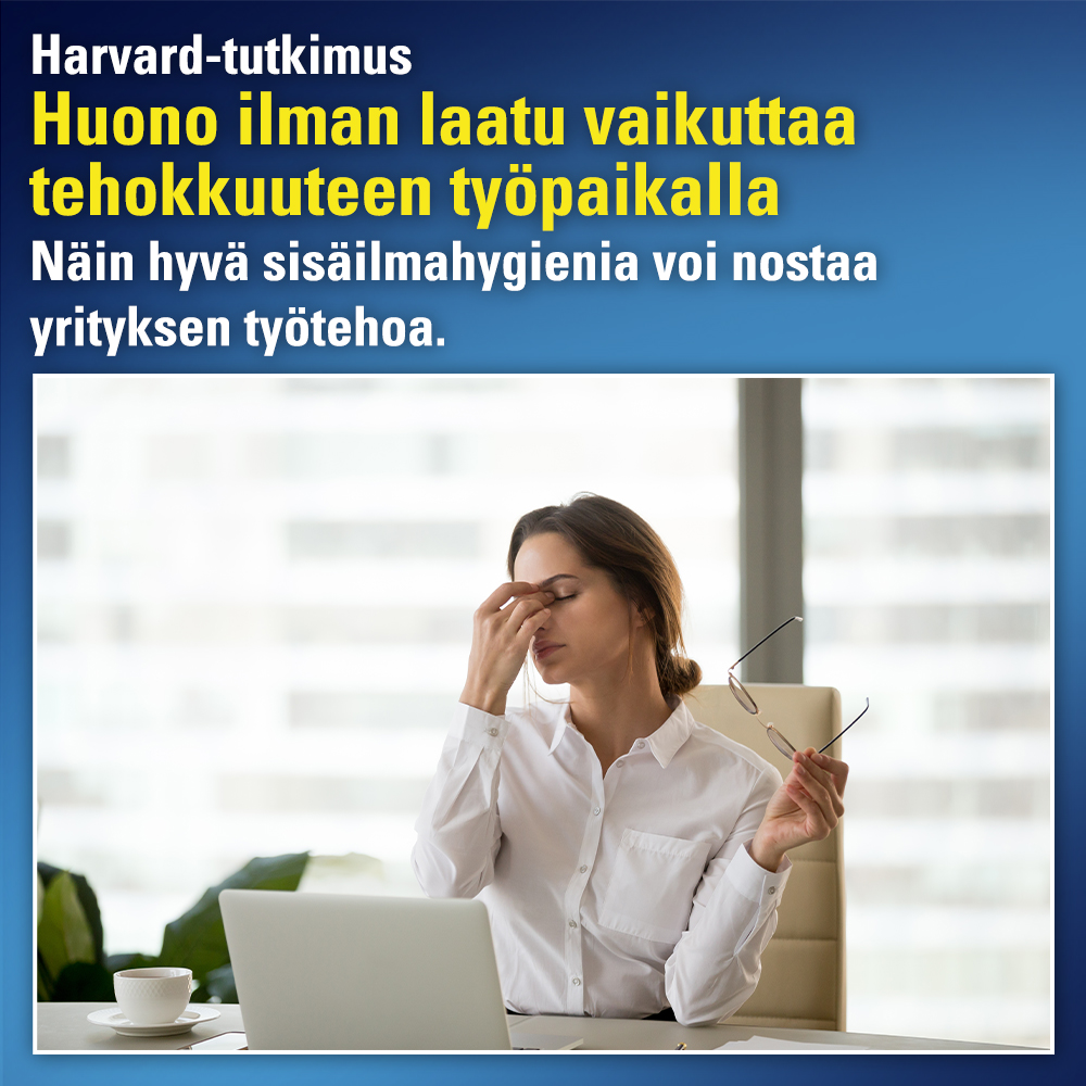 Kun toimiston työntekijät kärsivät päivittäin ”seisovasta ilmasta”, sillä voi olla huomattavia vaikutuksia työskentelyyn. Tähän tulokseen päätyivät arvostetun Harvardin yliopiston tutkijat, jotka tutkivat Yhdysvalloissa sisäilman laadun vaikutuksia työntekijöiden kognitiivisiin toimintakykyihin.