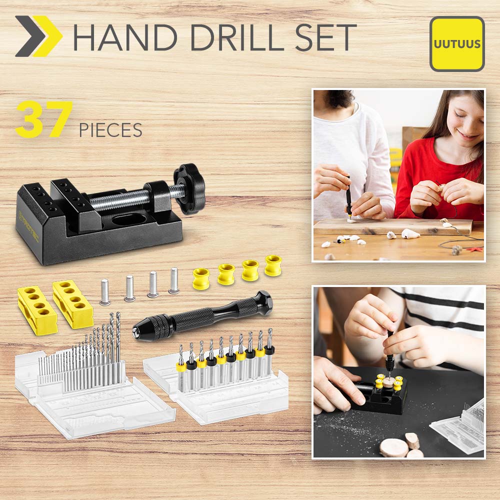 Intohimoisilla askartelijoilla ei ole tyypillistä askarteluaikaa. Tai sitten koko vuosi – tekemistä riittää. Varsinkin, kun käytettävissä on käsiporasarja, joka on viimein saatavana: 25 HSS-tarkkuusporanterää ja 10 HSS-mikroporanterää odottaa käyttöäsi, samoin kuin kevyestä alumiinista valmistettu minikäsipora, jossa on luistamaton kädensija. Kiinnittämiseen on mukana pieni ruuvipuristin. Monipuolisen varustepaketin täydentävät kaksi lujaa muovikoteloa tarkkuusporanterien säilyttämiseen pölyltä suojattuna.