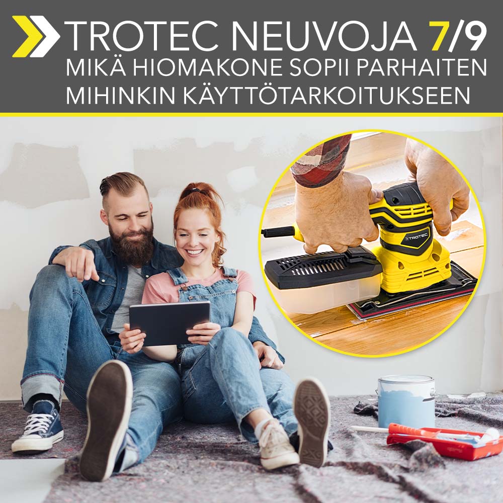 Kun puu ja metalli on sahattu, seuraava työvaihe odottaa. Hyllyn tai kaapin pintojen on oltava mahdollisimman tasaiset. Kun niitä on tehtävä, tarvitaan aina hiomalaite. Katso mikä hiomatyökalu sopii parhaiten tarkoitukseesi ja millä annat projekteillesi oikean viimeisen silauksen. Tarvitset parasta merkkilaatua Trotecilta: Ammattikäyttöön tarkoitetut hiomalaitteet näyttävät vahvuutensa joka työssä ja varmistavat tarkat tulokset.