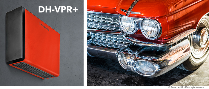 Yüksek değerli ve özel arabalarınızı güvenilir bir şekilde koruyun. Arabalarınızı tüm hasarlara karşı korumak istersiniz, çünkü sürüşleri emniyetli bir şekilde gerçekleştirmek istersiniz. Uzun süreli sürüşlere çıkmadan önce arabalarınız hazır olmalıdır: Özel arabanızı korumanız için modern ve ektin teknolojiyi kullanın ve nem oluşumunu engelleyin. Trotec’in DH-VPR+ serisi nem alma cihazları ile profesyonel desteğe sahip oluyorsunuz. Bir düğme dokunuşu ile garajlarınızda ideal klima oluşuyor.