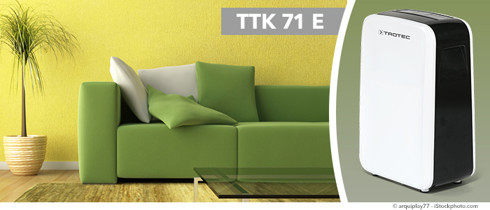 Bu nem alma cihazı TTK 28 E, özellikle ufak odalara göre tasarlanmıştır ve fazla yer kaplamaz. Hafifliği sayesinde kullanım alanları kolay bir şekilde değiştirilebilir. TTK serisi konforlu fonksiyonları ile donatılmıştır ve böylece kullanımı çok rahatdır. Kurutulması gereken ufak odalarınız var mı?