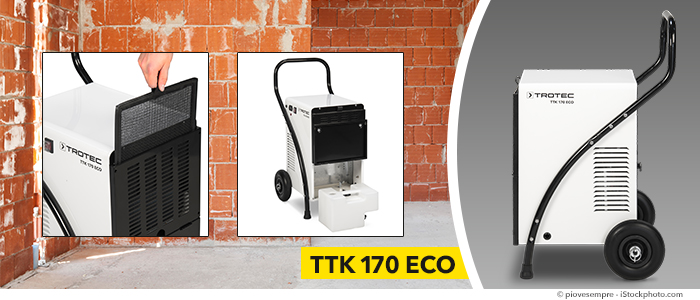 Restorasyon ve inşaat bölümlerde bulunan profesyonel çalışanlar, nem alma cihazı seçimlerinde düşük sıcaklıklarda bile yüksek nem alma kapasitesi sunan sağlam cihazları seçerler. Tıpkı nem alma cihazı TTK 165 ECO gibi: Sanayi alanlarda nem alma çalışmaları için ekonomik çözüm. Büyük tekerleri ve tutma kulpu sayesinde mobil kullanım.