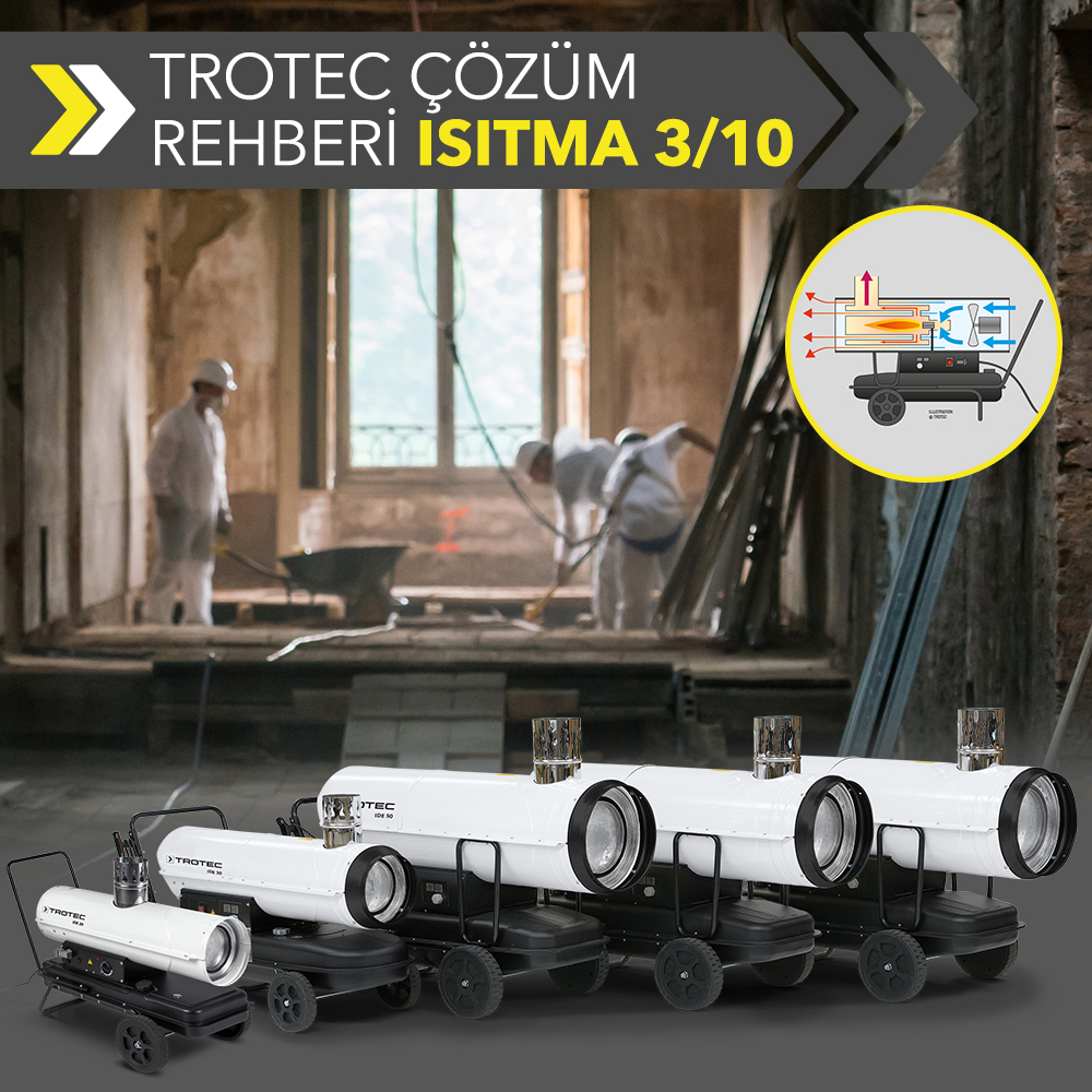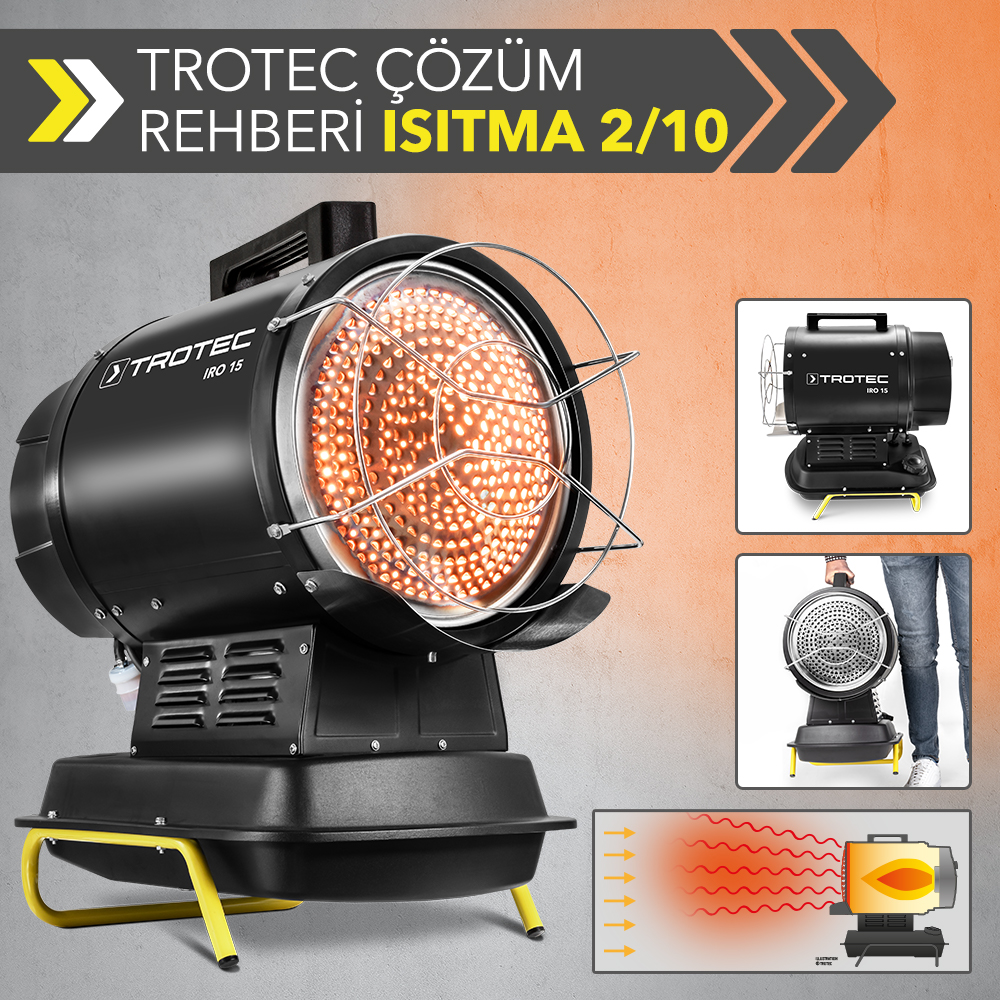 İnşaatlarda, tamirhanelerde veya depolarda rahat ısı sağlamak için mazotlu ısıtıcı IDE 30 idealdir. Temiz ve kuru hava oluşturur ve birçok alanda kullanım için uygundur.