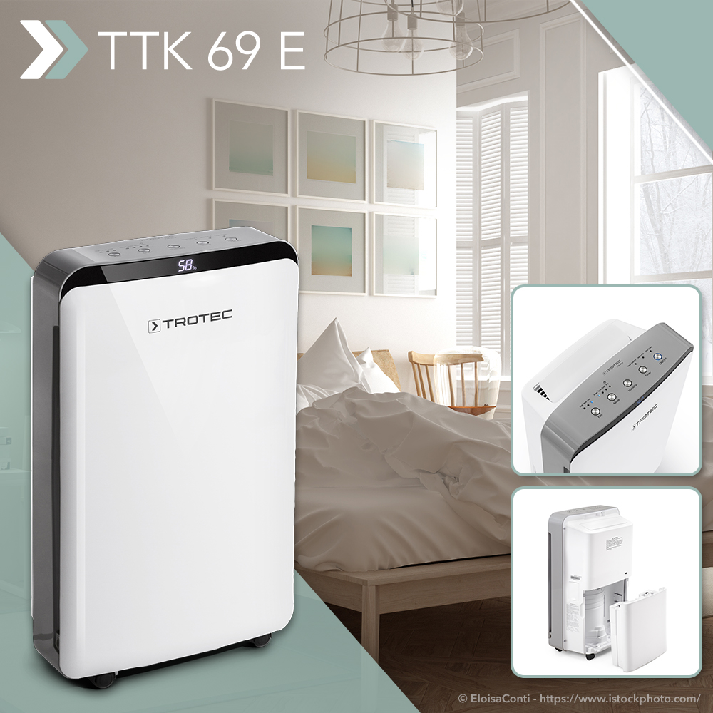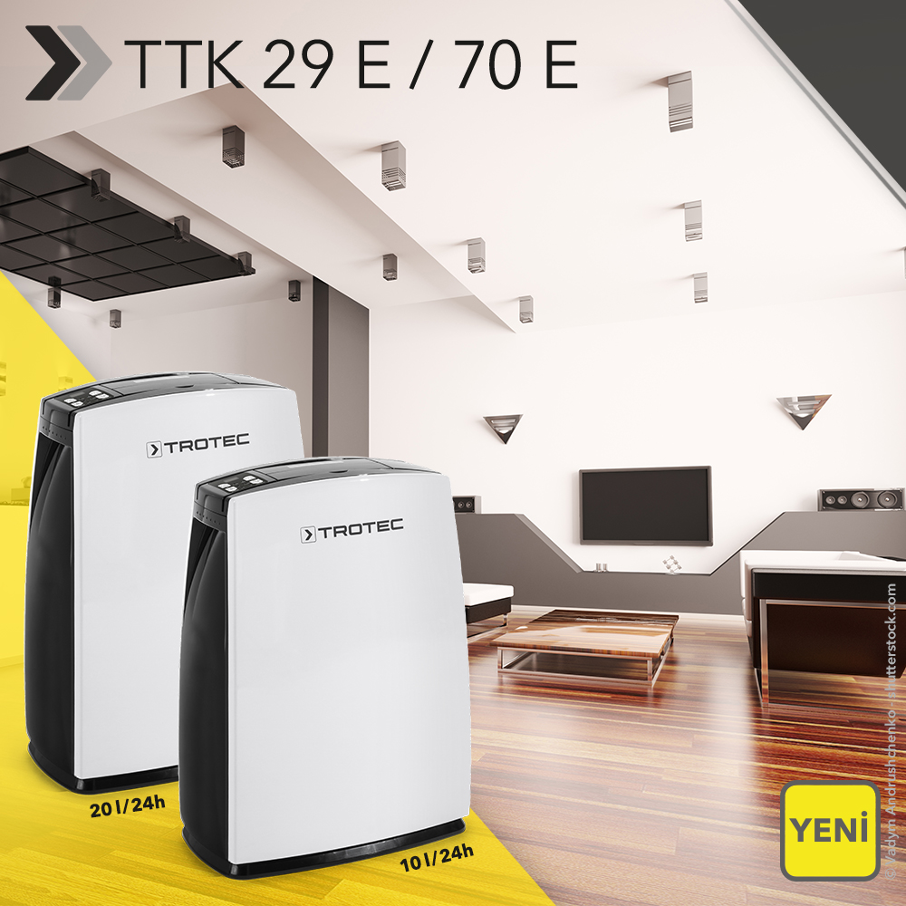 Ticari sektörde tipik nem alma kullanılımda özellikle ekonomik çözüm. Nem alma cihazı TTK 171 ECO tüm fonksiyonları için dijital göstergeli kontrol paneline sahiptir. Higrostat kontrollü otomatik işlem için daha sonra hedef belirlemenin yüzde artışları güncel değeri ile birlikte görüntülenir. Zor zeminlerde veya merdiven basamağında, taşıma kolu ve büyük nakliye tekerlekleri sayesinde üstesinden gelmektedir.