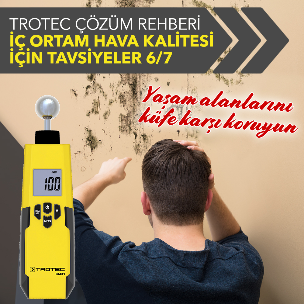 Nem oranı uygun olmadığında rahatsızlıklar veya solunum sorunları ortaya çıkabilir. Bunun için doğru oranları ayarlamanız önemlidir. Özellikle ısıtıcı kullanıldığında, çünkü kuru hava oluşur ve gözler veya solunum yolları etkilenir. Nem oranını çok kolay bir şekilde BZ05 nem ve sıcaklık ölçer veya BZ06 ile kontrol edebilirsiniz. Nem oranını güvenilir bir şekilde tespit edin ve gerekli önlemleri alın. Okumaya devam et