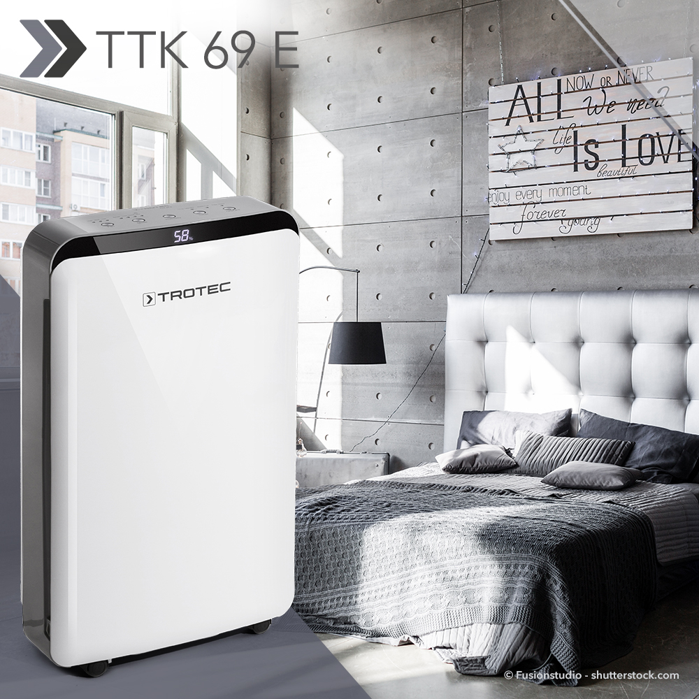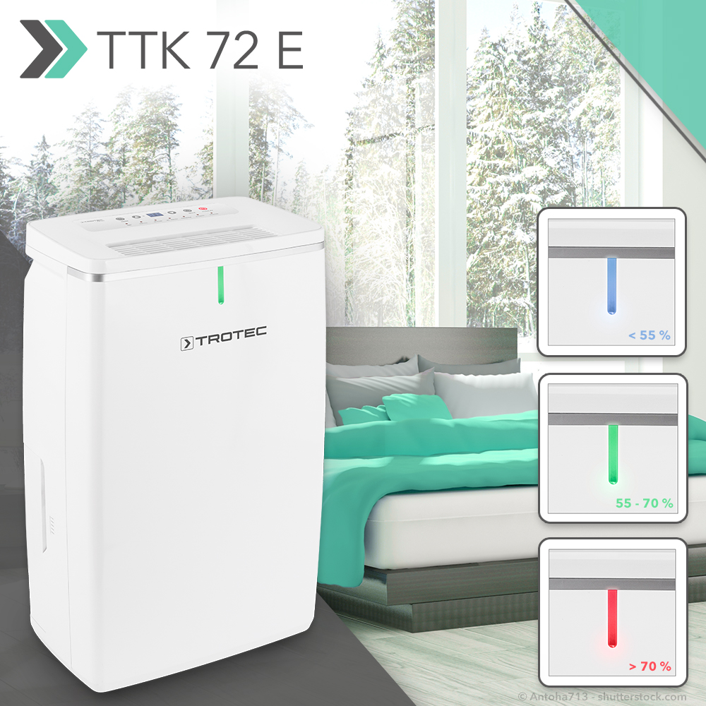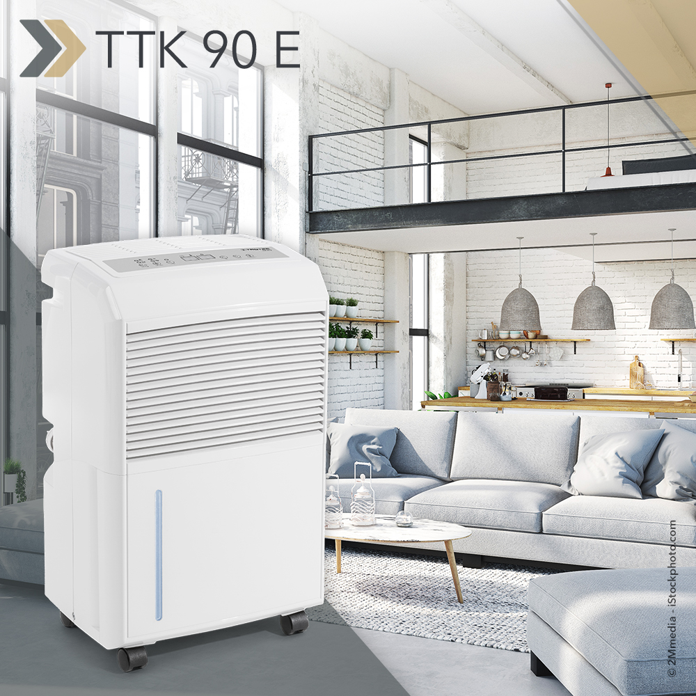Günde 30 litre nem alma kapasitesine sahip TTK 95 E nem alma cihazı 90 m² büyüklüğündeki alanları kuru tutar. Timer fonksiyonu, aşırı taşmaya karşı otomatik kapanma ve su haznesi dolduğunda uyarı lambası TTK 95 E nem alma cihazının donanımlarına dahildir.