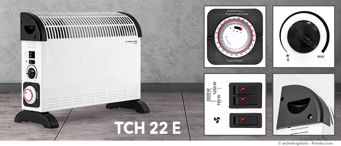 İdeal siyah ve beyaz tasarımlar – estetik ve teknolojiye uygun ısıtma çözümleri. Isı kaynağını şık bir görünüş ile yaşam alanlarına yerleştirmek isteyenler, beyaz TCH 2010 E ve siyah TCH 2011 E arasından seçim yapabilir. Bu yüksek değerli cam konvektörlerin özel tasarımı, TCH serisinin tüm avantajlarını açıklıyor: hızlı ve kolay, temiz ve sessiz ısı.