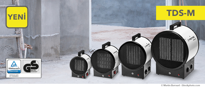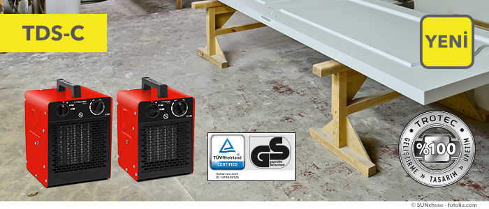 Serin havalar için – TDS-C serisi ısıtıcılar. Herzaman yanınızda bulunan ısıtıcılar olarak tasarlanmışlardır ve inşaat ve tamirhaneler için uygunlar. Bu modern elektrikli ısıtıcılar montajlarda veya tamirhanelerde gerekli olan avantajları sunarlar. Ayrıca markamızın garantisini veriyoruz çünkü bu ısıtıcılar, geliştirmeden üretime kadar %100 Trotec’dir – geliştirilmiş PTC seramik ısıtma elemanları dahil.