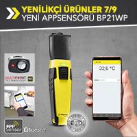 Bu appSensörlü BP21WP, MultiMeasure telefon uygulaması ile birlikte infrared ölçümlü temassız yüzey sıcaklığı ölçer. Akıllı appSensörü ve ücretsiz telefon uygulamasından oluşan kombinasyon ile kullanıcılar birçok avantajlarından faydalanır: esnek kullanım, analiz fonksiyonu, veri kontrolü ve dokümantasyon.