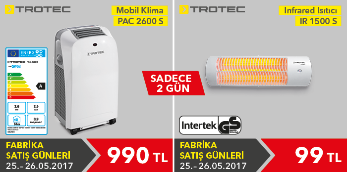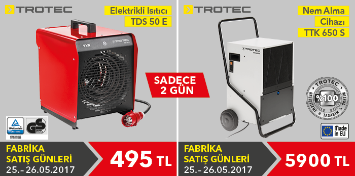 İstanbul – Esenler: Yarın büyük TROTEC fabrika satışı başlıyor. SADECE 2 GÜN! Sizlere orijinal TROTEC ürünlerini inanılmaz fiyatlara sunuyoruz. Sınırlı stok. Özel cihazları ve uygun fiyatları kaçırmayın!