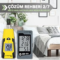 Bu ölçümler higrometreler ile çok kolay gerçekleşir, örneğin BZ05 veya BC06. Bu ölçüm cihazları ile oranların ideal olup olmadığını tespit edebilirsiniz. İdeal nem oranı sağlayarak sağlığınızı koruyabilirsiniz.