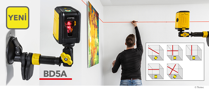 Trotec’in yeni çapraz çizgi lazeri BD5A ideal dik açılı lazer çizgilerini duvara aydınlatıyor – Tüm ayarlamalar kolay bir şekilde gerçekleşiyor. Şimdiye kadar su terazisi ve kurşun kalemi kullanılan heryerde modern lazer teknolojisi yardımcı oluyor. Yeni çapraz çizgi lazeri BD5A!