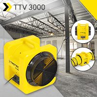 Yeni TTV 3000 saat’de 3.000 m³ hava debisi ile aramıza katılıyor. Hızlı kurutma işlemleri, düzenli havalandırılmayan mekanlara temiz hava aktarması veya kanal ve kaynak çalışmalarında havalandırma uygulamaları için kullanılabilir. Çift taraflı hava taşıma hortumların montaj imkanı ile donatılmıştır.