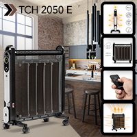 TCH 2050 E ısıtıcıyı alanın ortasına kurmanız tavsiye edilir böylece 3D ısı dağılımından faydalanırsınız. 2.000 W ısıtma gücü ile bu TCH 2050 E ısıtıcı 24 m² – 60 m³ büyüklüğündeki alanlarda sıcak ortam havası sağlar. 3 kaplı Mica ısıtma plakaları kısa bir sürede sıcaklar oluşturur. Oturma odası, yatak odası, banyo, çocuk odası, tatil evi, hobi odası, ofis, satış alanı veya kış bahçesinde kullanım için idealdir.