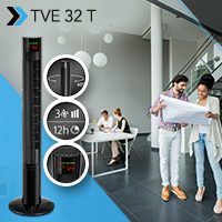 Rotor kanatlı çalışan tanılmış diğer vantilatörlere göre bu kule tipi vantilatör dönen dingil ile çalışır. Soğutma işlemi ince plakanın dönmesi ile cihazın iç kısmından gerçekleşir. 58,5 dB(A) sessiz çalışma şekli ve düşük enerji tüketimi ile bu kule tipi vantilatör TVE 32 T yılın en güzel mevsimi için şık bir soğutma çözümüdür.