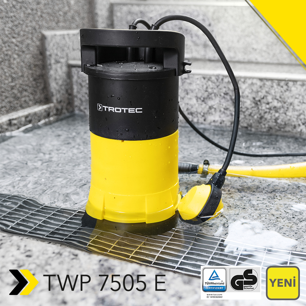 Yüksek performanslı ve bakım gerektirmeyen 750 W motoru ile bu temiz su dalgıç pompası TWP 7505 E, 5 milimetre büyüklüğünde partiküllü temiz veya az kirlenmiş su transfer eder. Bu cihaz alt tabakaları silinecek kadar kurutur ve geriye sadece 3 mm su kalır. Bu temiz su dalgıç pompası ile sulu bodrum katlarında ve yüzme havuzlarında kuruluk sağlanır.
