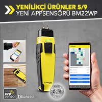Bu appSensörlü BM22WP, MultiMeasure telefon uygulaması ile birlikte direnç yöntemine göre beton ve ahşap nemi ölçem bir nem indikatörüdür. Esnek kullanım, analiz fonksiyonu, veri kontrolü ve dokümantasyon – çok kolay.