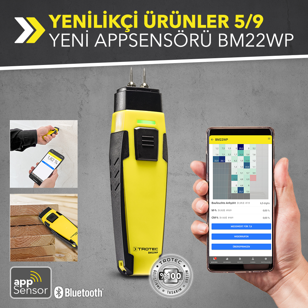 Akıllı Telefon Kullanımlı Beton ve Ahşap Nem Ölçer BM22WP – Trotec marka kalitesi