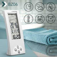 İç alanlar için uygun olan yeni hava istasyonu size tüm önemli sıcaklık değerlerini gösterir. Hava durumu, zaman, tarih, oda sıcaklığı ve nem oranını gösterir. Şık LCD ekranı göze çarpar. Ayrıca çalar saati bu BZ06 termo higrometrenin donanımlarını tamamlar.