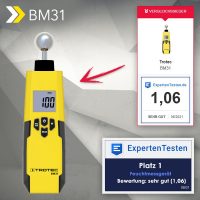 Profesyonellerin, uzmanların ve ev sahiplerin arasında son derece popüler olan Beton ve Ahşap Nem Ölçeri’miz BM31, sekiz nem ölçer testinde tartışmasız karşılaştırma kazananı olarak bir kez daha kendini kanıtladı. Beton ve Ahşap Nem Ölçeri BM31, TÜV sertifikalı karşılaştırmada ve test prosedüründe www.ExpertenTesten.de tarafından “Çok İyi” olarak değerlendirilen tek el ölçüm cihazı oldu. Testçiler, bazı durumlarda daha yüksek ürün fiyatlarına rağmen, diğer tüm cihazların sadece “iyi” veya “tatmin edici” olduklarını buldular.