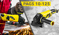 PAGS 10-125 mil kilidi ile donatılmıştır ve böylece aletsiz disk değişimi gerçekleşir – Avuç içi taşlamanın kilit tuşuna basın ve diski değiştirin. Diğer cihazlara göre bu PAGS serisi avuç içi taşlamalar, disk ve fırça korumasının aletsiz hızlı ayarını mümkün kılıyor ve böylece tüm açılarda sorunsuz çalışmalar gerçekleşiyor.